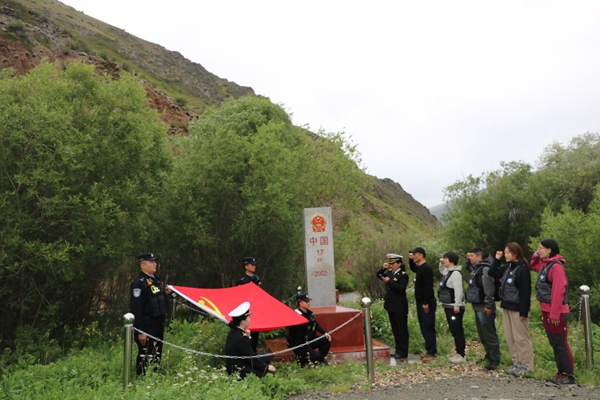清晨,动物进化党总支、阿勒泰海关机关党委、阿勒泰边境管理支队红山嘴口岸边境派出所等口岸联检单位和阿勒泰海关2025年第二监管组成员庄严肃穆,共同举行升国旗仪式,与会人员同唱国歌;随后,与会人员参观了阿勒泰海关党性教育基地展馆,阿勒泰海关机关党委组织委员白岑、阿勒泰海关离退休干部党支部储成海进行了讲解,红山嘴口岸从简陋、艰苦一步一步走来,变大变强,是国家强盛的缩影;最后,白岑带领全体党员在中蒙17号界碑重温入党誓词,不忘初心、牢记使命,发挥党员先锋堡垒作用,为国家贡献自己的力量。