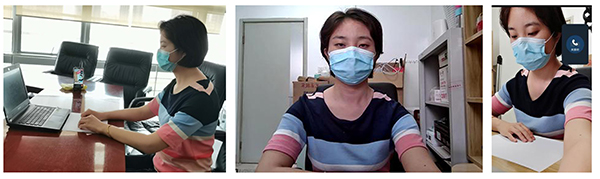图1(左).全景图(手机和电脑摆放位置) 图2(中).腾讯会议视频拍摄 图3(右).钉钉视频拍摄