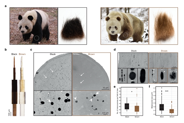 图1. 棕白大熊猫和黑白大熊猫毛发性状