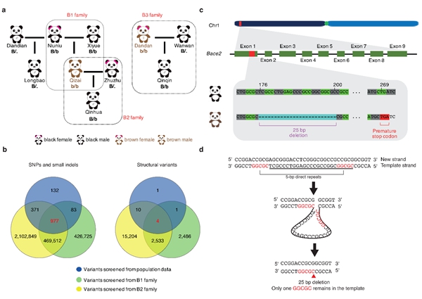 图2. 棕色大熊猫家系和Bace2突变候选位点
