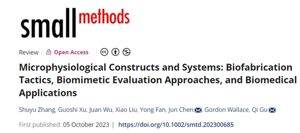 该综述“Microphysiological Constructs and Systems: Biofabrication Tactics, Biomimetic Evaluation Approaches, and Biomedical Applications”发表于Small Methods,为当期内封面文章。