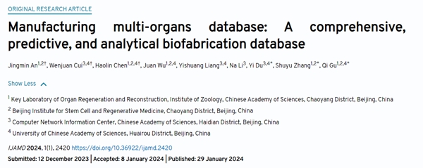 顾奇团队合作取得器官制造数据库及功能评价模型进展