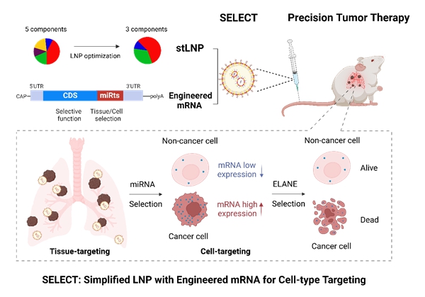 图1. SELECT技术介导器官和细胞双重特异性mRNA递送。