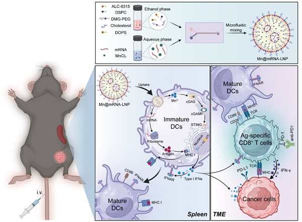 魏妥团队合作开发掺杂锰佐剂的脾脏靶向mRNA肿瘤疫苗