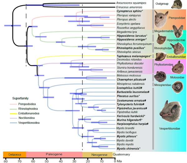 图1 蝙蝠的系统发育和分化时间