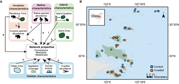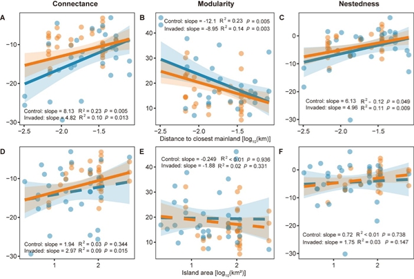 刘宣和郭宝成团队合作揭示入侵捕食者对岛屿种间互作网络结构及其生物地理格局的重塑机制