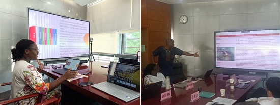 会上,两位TESA项目1期访问学者分别汇报了各自的工作。Nobesuthu Adelaide Ngwenya女士的研究题目是“津巴布韦卡万戈–尚比西保护区人象互作导致的社会心理问题研究”,她着重研究了津巴布韦近年来由于大象数量显著增加而导致的大象活动与社区居民冲突不断加剧的社会问题,并从科学指导、动物保护,社区管理和居民生计等方面为CITES更好地发挥作用提出了相关建议。Jacob Mueti Ngwava博士的研究题目是“肯尼亚CITES公约附录Ⅰ物种鉴别手册”,在为期3个月的TESA项目中,他整合此前已有的文献与研究结果,编写新的肯尼亚CITES公约附录Ⅰ物种鉴别手册,目前已完成肯尼亚CITES附录Ⅰ龟鳖目6个物种的编写工作,填补了多项信息空白。