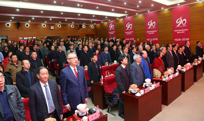 在雄壮激昂的乐曲声中,全体在场人员起立,高唱国歌。随后大家一同观看了动物研究所的宣传片,回顾了研究所九十年的风雨历程和辉煌成就。九十年来,无数动物所人日夜兼程,只为了追逐远方的星辰,将它装点在国家的画卷上;他们攻坚克难,披荆斩棘,只为实现科技报国的理想。