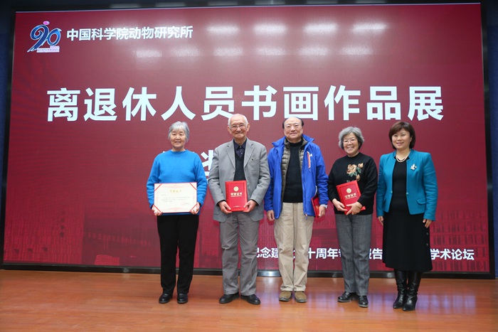 在喜迎建所九十周年的日子里,研究所举办了“银发丹心 始终如一”首届离退休人员艺术作品展,老同志们用饱含深情的艺术作品为动物所九十周年的庆典献上了自己的一份厚礼。经过线上线下投票,共有14名老同志获得奖项。动物研究所党委副书记、纪委书记杨俊成宣布获奖名单,聂常虹书记为获奖老同志代表颁奖。动物所前任所长刘树森先生、干细胞与生殖生物学国家重点实验室前副主任陈大元先生分别作为获奖代表进行致辞答谢,并送去了对研究所美好未来的祝福。