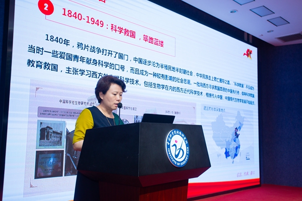 在党课第二阶段,党委书记、副所长聂常虹以《传承科学家精神 科技创新服务国家战略和使命》为题为与会党员讲党课。聂常虹深情讲述了中国生物学奠基人、动物所创始人秉志先生的感人事迹。她认为,秉志先生把自己的一生献给了科学事业,献给了人民,献给了祖国,是我国老一辈知识分子的优秀代表,他的科学成就将永远镌刻在中国乃至世界的科学史上,他勇攀人类科学高峰的精神,将激励我们一代代年轻的科学人接续奋斗,矢志不渝!接着,聂常虹介绍了中科院动物所“信念传承 奋斗”党员主题教育基地建设和运行情况。在“科技服务国家使命 创新植根爱国之魂”部分,聂常虹重点阐述了科技创新要服务国家使命和战略,立足世界面临百年未有之大变局的时代背景,强调了爱国情怀是科技创新之根基。