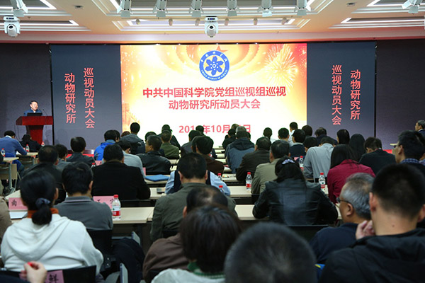 根据中国科学院巡视工作领导小组统一部署,受中科院党组委派,10月23日上午,院党组巡视组巡视动物研究所动员大会召开。会上,巡视办综合与政策研究室主任陈长杰宣读巡视组组长授权书和巡视组组建通知,巡视组组长姬兰柱作巡视工作有关情况报告和动员,动物研究所所长周琪作研究所“三个面向”“四个率先”实施情况报告,动物研究所党委书记聂常虹作党的建设专题报告。动员大会由北京分院纪检组组长、分党组成员倪宏主持。巡视组全体成员,巡视办相关工作人员,北京分院工作人员,动物研究所领导班子成员,党委委员,纪委委员,管理支撑部门负责人,实验室、研究组负责人,党总支、支部书记以及职代会、工会、团委、妇委会、学生会等群团组织的负责人,副高级及以上职称人员等近200人参加会议。