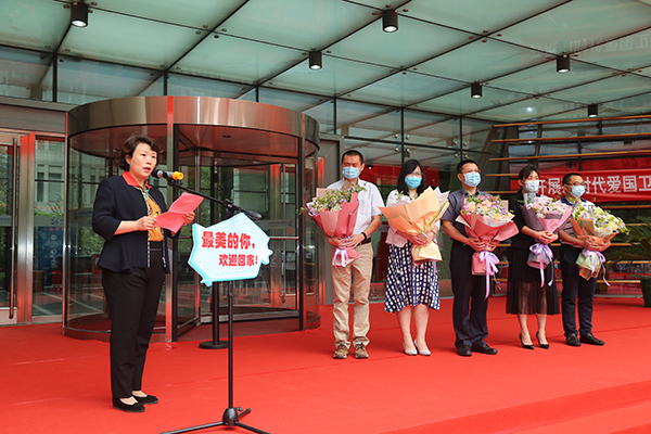 5月6日上午,动物研究所举行了隆重的赴武汉抗“疫”科研攻关团队凯旋欢迎仪式,迎接胡宝洋、郝捷、杨维、李天达、谭元卿5位“最美逆行者”圆满完成在武汉的抗疫科研攻关任务,结束隔离观察返回研究所工作岗位。党委书记、副所长聂常虹代表所党政领导班子讲话,党委副书记、纪委书记杨俊成主持欢迎仪式。所领导班子成员、所长助理、干细胞创新院战“疫”科研攻关团队全体成员、管理支撑部门中层领导人员、各党总支/支部代表共计60余人参加欢迎仪式。