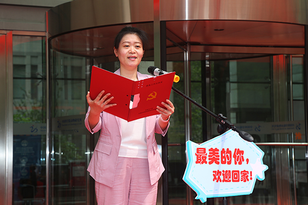 随后,党办王潇同志朗诵了由党委书记聂常虹和党委办公室主任姜秉国创作的诗歌《你是这个春天最美的花——献给郝捷和奋战在抗“疫”一线的科技工作者》。在深情的文字中,无不体现郝捷和抗疫科研攻关团队在党和国家最需要的关键时刻挺身而出的爱国情怀和舍小家为大家“敬佑生命、救死扶伤、甘于奉献、大爱无疆”的使命与担当,在场的人为之动容、感动落泪。