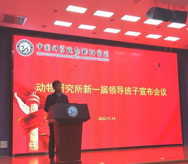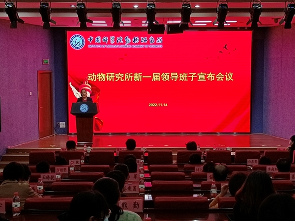 2022年11月14日下午,动物研究所(以下简称动物所)召开新一届领导班子宣布会议,院人事局副局长蔡宏志、干部二处处长宋琦等到动物所宣布新一届领导班子。动物所新老领导班子成员、党委委员、纪委委员、院士、副处及以上中层、实验室正副主任等40余人参加了会议。会议由蔡宏志副局长主持。